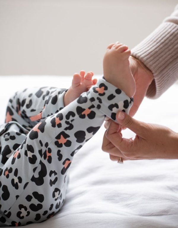 Night-time diaper changes are no problem with our Easy Zip Organic Cotton Sleepsuits! Made in ultra-soft organic cotton, this clever baby sleepsuit is super cute, kind on sensitive skin and packed with innovative features. Our ingenious two-way zipper crotch makes middle of the night diaper changes that little bit easier, with extra-long, easy-to-find zipper pull tabs in bright coral. Built-in growing room ensures a comfy fit for longer, with fold-down cuffs allowing for an extra inch at the arms and almost 3 inches at the legs. Finished in a colorful animal print, this set comes with a matching bandana style bib – it’s the perfect baby shower gift!