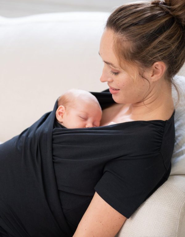 Hold your little one close with our innovative skin to skin top and discover the benefits of kangaroo care for both you and your baby. Made in the very softest stretch cotton, this top is gentle on both mum & baby’s skin. The structured fabric provides the perfect level of support while the wrap ties secure baby in the optimal position. This allows you to enjoy hands-free cuddle time while sitting or reclining. Wear this must-have top for discreet skin to skin contact with your baby or as a regular wrap nursing top, providing easy access for breastfeeding. Team with leggings for a luxurious loungewear look.